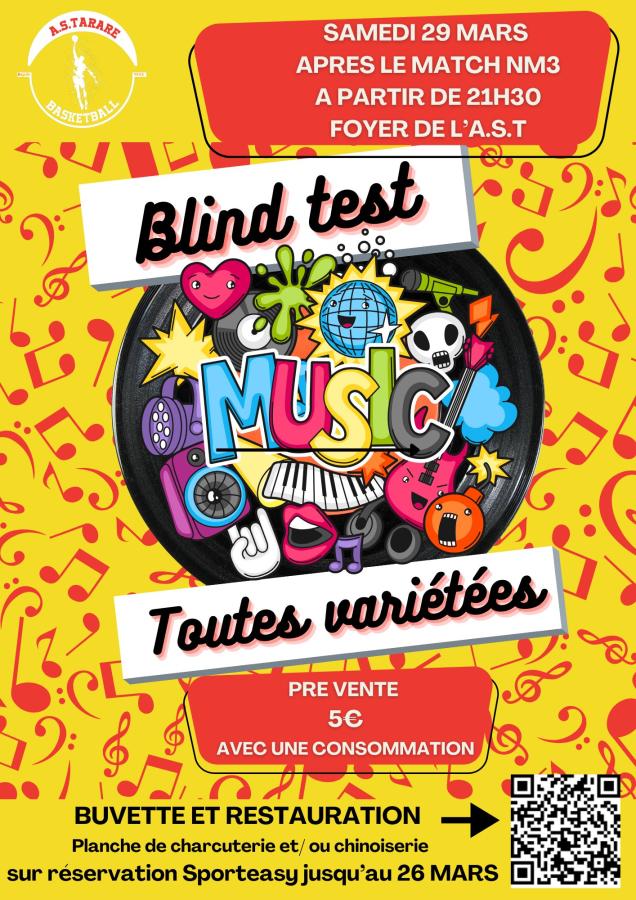 Pour rappel, le club organise aprรจs la rencontre une soirรฉe Blind Test. Vous pouvez rรฉserver des planches de charcuterie ou de chinoiserie via le lien suivant : https://as-tarare-basket.sporteasy.net/.../29974/dashboard/