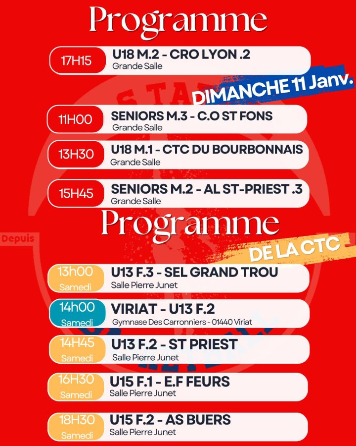 Au programme : beaucoup de matchs à domicile, l’occasion parfaite pour venir nombreux encourager nos équipes 💪